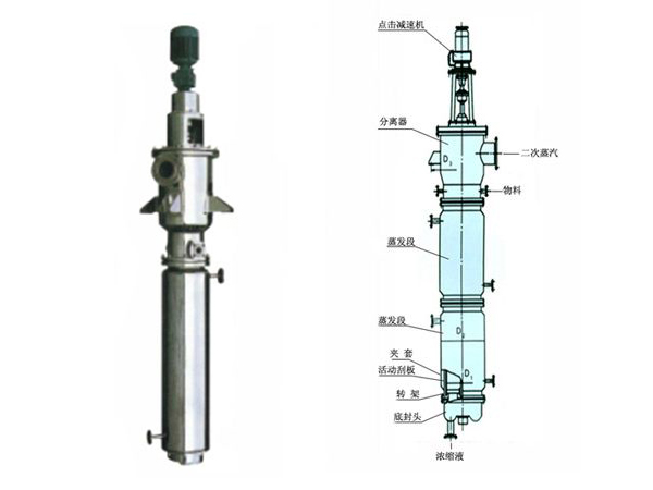 這類蒸發(fā)器的缺點是結(jié)構(gòu)復(fù)雜(制造、安裝和維修工作量大)加熱面積不大,且動力消耗大。