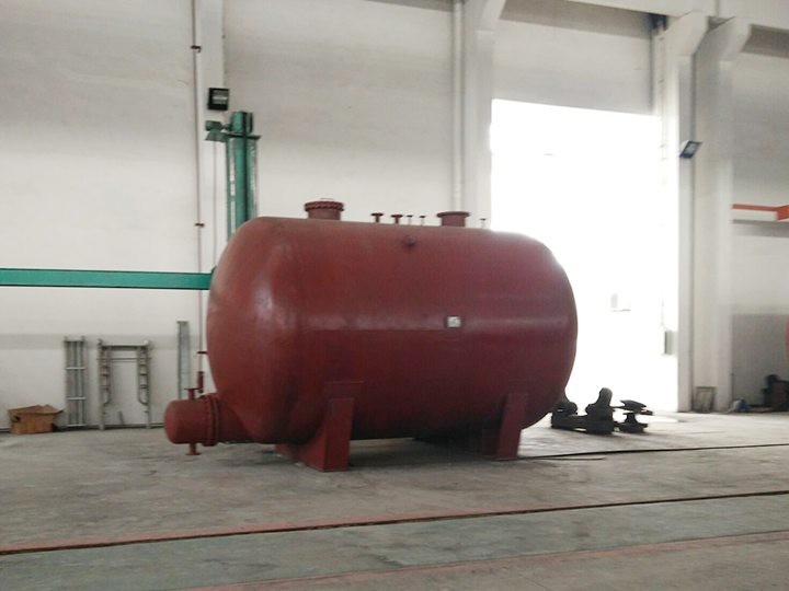 蒸餾釜,涉及一種化工生產(chǎn)中蒸餾所使用的釜。主要是為解決現(xiàn)有的蒸餾釜在生產(chǎn)過程中當(dāng)物料中含有固狀物及高沸點(diǎn)物時需間斷檢修清理的問題而設(shè)計的。它包括蒸餾釜?dú)んw,在蒸餾釜?dú)んw上方是上封頭,上封頭上有氣體出口,上封頭下方有除沫器,除沫器下方為貯料室,貯料室上部有進(jìn)料口,室內(nèi)設(shè)立式蒸發(fā)器,蒸餾釜下部為固狀物及高沸點(diǎn)物沉降室,在沉降室內(nèi)設(shè)攪拌器,攪拌器軸通過軸封與外部電機(jī)相連,蒸餾釜底部設(shè)固狀物及高沸點(diǎn)物排出口。優(yōu)點(diǎn)是可隨時排出固狀物及高沸點(diǎn)物,無須間斷檢修清理,保證生產(chǎn)連續(xù)進(jìn)行。